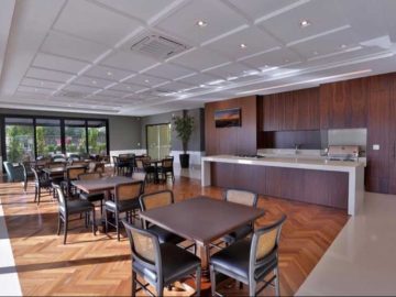 São 4 suítes, com máster que oferece 2 closets e banho Sr. e Sra. com banheira e ponto para ar-condicionado. Planta completa: sala de almoço, louceiro, sala íntima, cozinha, despensa, área de serviço, dormitório e banheiro de serviço, área técnica e central de ar condicionado.