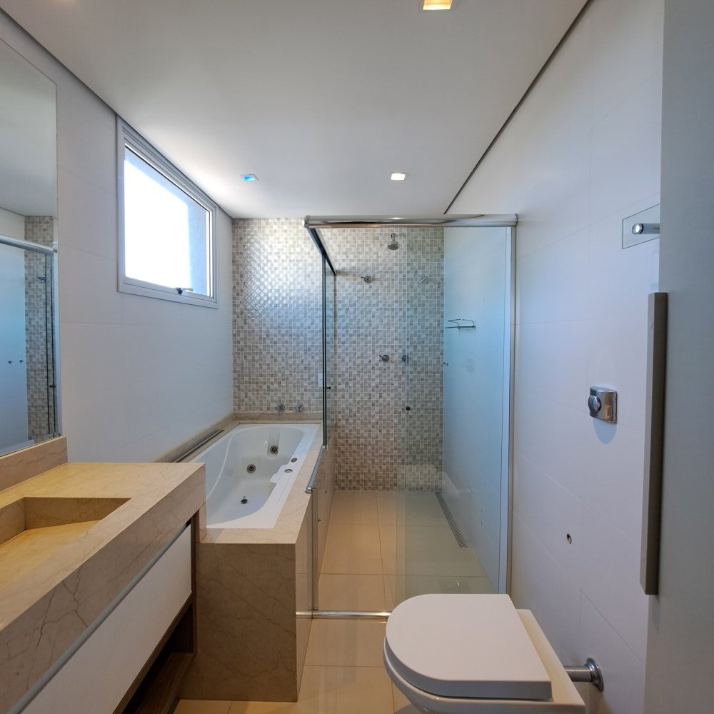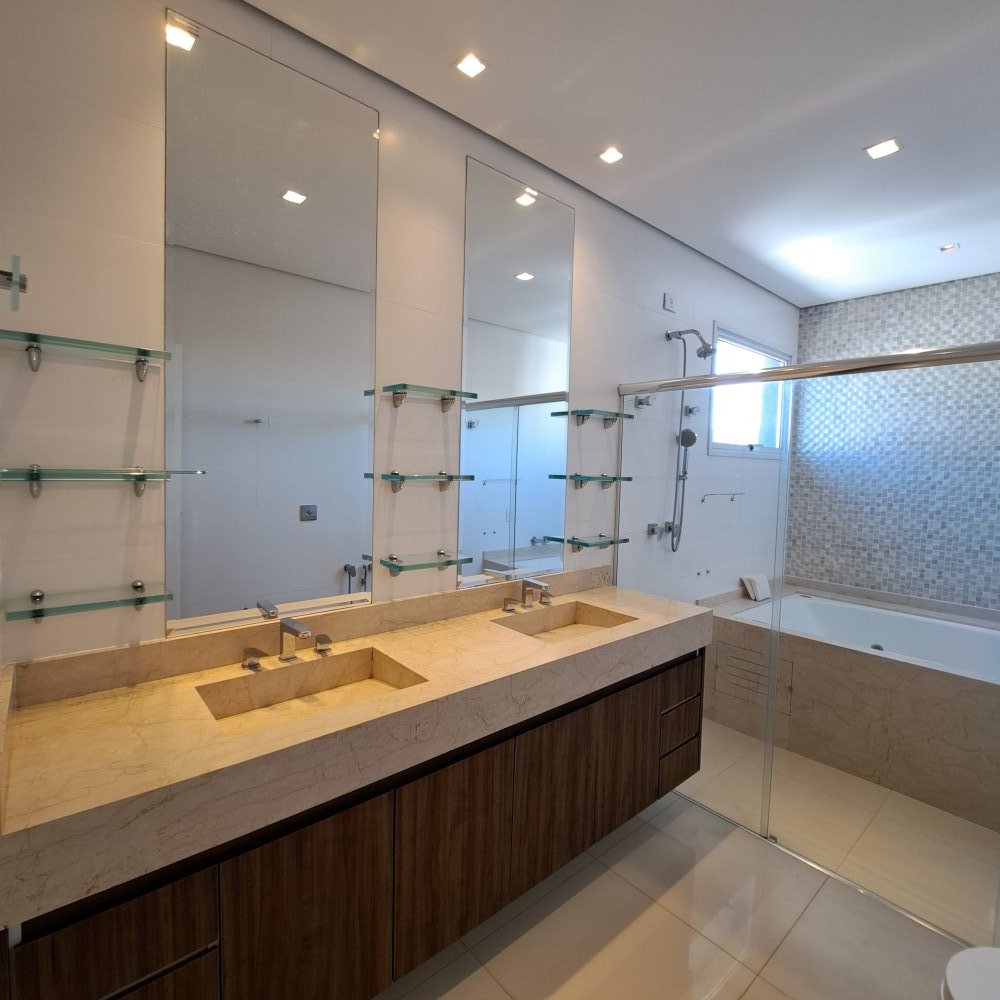 Com 4 suítes muito bem distribuídas, duas delas com banheira, este imóvel oferece privacidade e conforto para toda a família. No andar superior, três suítes entregam tranquilidade e elegância, além de um espaço de apoio com pia e frigobar — ideal para quem valoriza praticidade. Um escritório completo também está ali, perfeito para trabalhar em paz ou estudar com foco. Já no térreo, uma suíte adicional está pronta para receber hóspedes com o conforto que você adoraria oferecer.